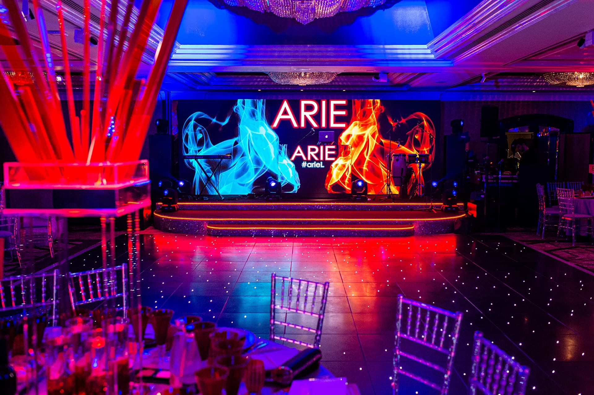 Getting to the venue several hours prior to start Arie’s bar mitzvah photography and ensure all the details and families were captured perfectly I could see the enormous amount of planning that had been going on with the lighting set up by David Graham at Sound Division and the black glitter stage set for the sounds of Totem.